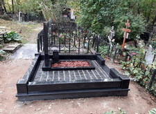 На фотографиях, представленных ниже, наблюдается состояние участка на момент сдачи объекта. Место захоронения оформлено просто, строго и максимально качественно: изделия из гранита простоят не один, и даже не два десятка лет, а уложенный под брусчатку текстиль позволит забыть о сорной траве.